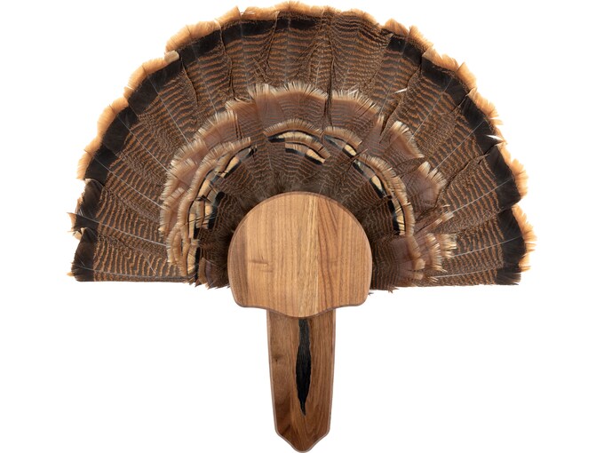 The Walnut Hollow Country Turkey Mounting Kit. The large face plaque helps to hide ugly, fuzzy quill feathers and the large back plaque supports and displays the beard. Spurs can be glued onto the back plaque to enhance the display (glue not supplied). Works with Eastern, Osceola, Rio Grande, Merriam?s, and Gould?s turkeys. The mount is 15? high x 8? wide, and is supplied with instructions, hardware, and a wall hanger. Turkey fan and beard are not supplied. Made In United States of America
