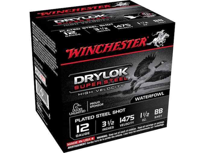 Flooded timber, swamps, marshes, duck blinds and john boats; duck hunters get wet?it’s all part of the hunt. Winchester Drylok Super Steel loads are trusted by the most hard-core duck hunters in the harshest of conditions. Winchester’s patented technology is designed to keep your shotgun shells dry, time after time, no matter where you are. When it matters, you need Drylok Super Steel.?FeaturesHeavy Wad DesignPlated Steel ShotDrylok Super Steel WadLacquered Primer Made In United States of AmericaWARNING: This product can expose you to Lead, which is known to the State of California to cause cancer and birth defects or other reproductive harm. For more information go to – www.P65Warnings.ca.gov.