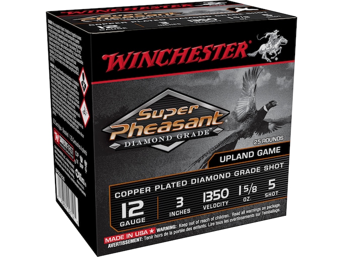 Winchester Super Pheasant Diamond Grade Ammunition is built for performance with long-range power, hard hitting plated lead shot and a tight-patterning wad that builds on the hunter’s trust in Winchester and its legendary excellence. Super Pheasant is the ideal shotshell for hunters seeking an edge in the field. Loaded with super high antimony lead shot that is precision sorted and copper plated. The pattern density and performance with this product is unmatched.?FeaturesShot is precision sorted and copper plated for maximum consistencyLegendary AA Wads reduce felt-recoilHardest shot available ensures tighter patterns and reliable performance Made In United States of AmericaWARNING: This product can expose you to Lead, which is known to the State of California to cause cancer and birth defects or other reproductive harm. For more information go to – www.P65Warnings.ca.gov.